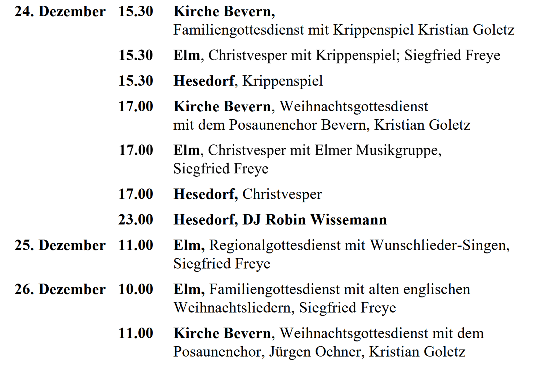 Weihnachten in Hesedorf und Region